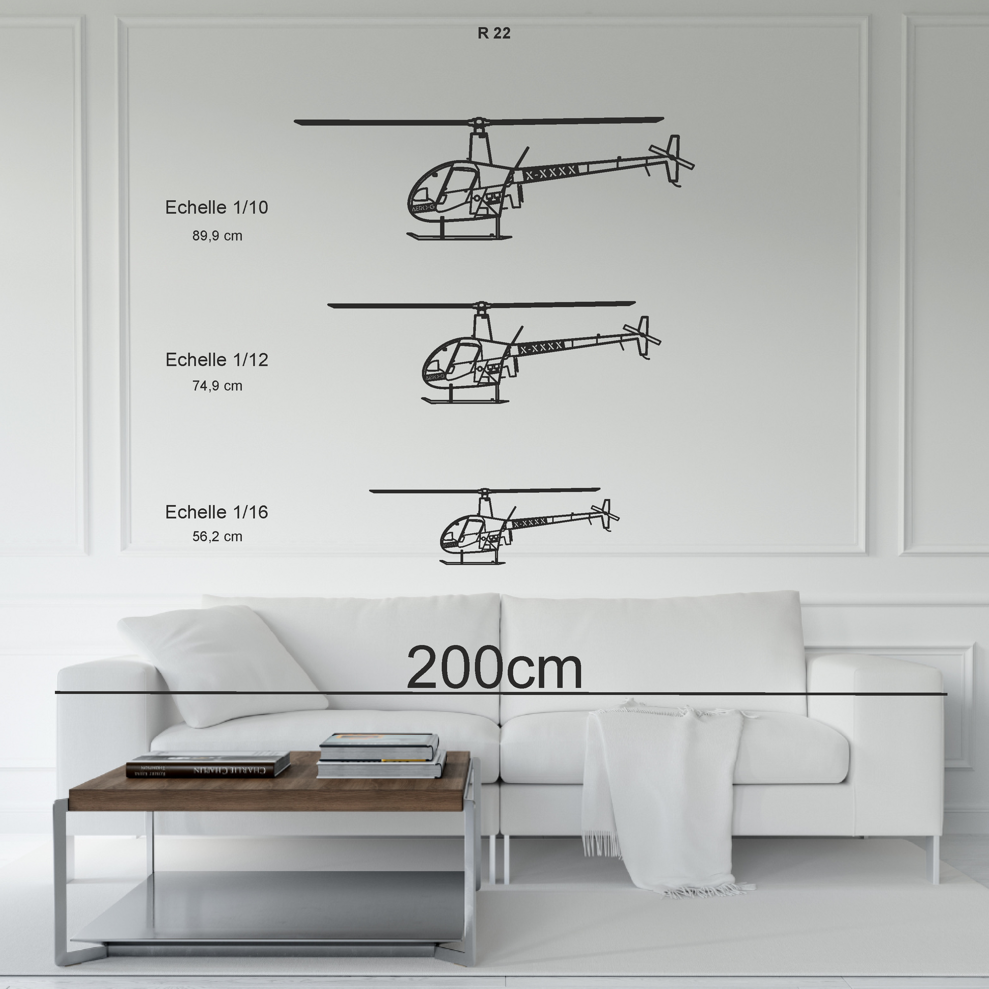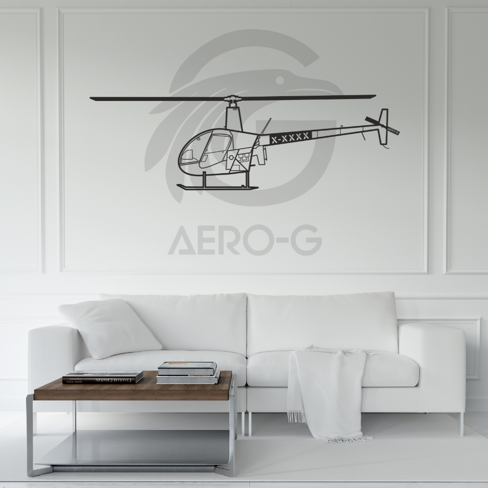 - Personnalisez la silhouette gracieuse du Robinson R22 en ajoutant l'immatriculation distinctive de votre propre avion.