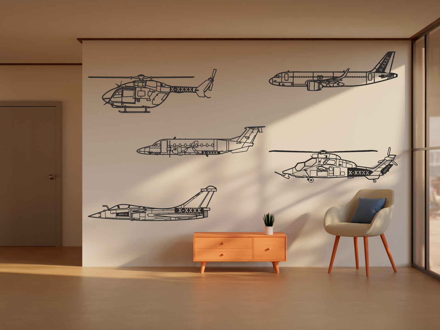 Notre processus de personnalisation est simple et amusant. Choisissez parmi notre sélection de silhouettes d'aéronefs élégants. Ensuite, laissez libre cours à votre imagination en personnalisant votre silhouette selon vos préférences. Choisissez la couleur qui vous inspire, déterminez la taille parfaite pour votre espace, et pour une touche vraiment personnelle, ajoutez l'immatriculation de votre choix.